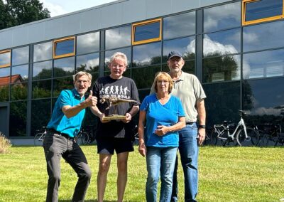 Uwe Götzinger zeigte sich erfreut über die große Teilnehmerzahl und die großzügigen Spenden von lokalen Partnern. Besonders spannend war die Verlosung des Hauptpreises: Eine dreitägige Reise nach Berlin inklusive Besuch im Bundestag bei der Bundestagsabgeordneten Marja-Liisa Völlers. Diese ließ es sich nicht nehmen, persönlich vorbeizuschauen und das Turnier zu verfolgen. Der Hauptpreis wurde an das Team „Vorstand Dörpverein“ mit Hiltrud und Daniel Lindenberg sowie Marian Wesemann verlost. Die Losziehung durch Frau Völlers sorgte für einen besonderen Abschluss eines gelungenen Turniertages. Der „Dino-Cup“ in Münchehagen hat erneut gezeigt, wie viel Freude und Gemeinschaftssinn bei diesem beliebten Boule-Event entstehen können.