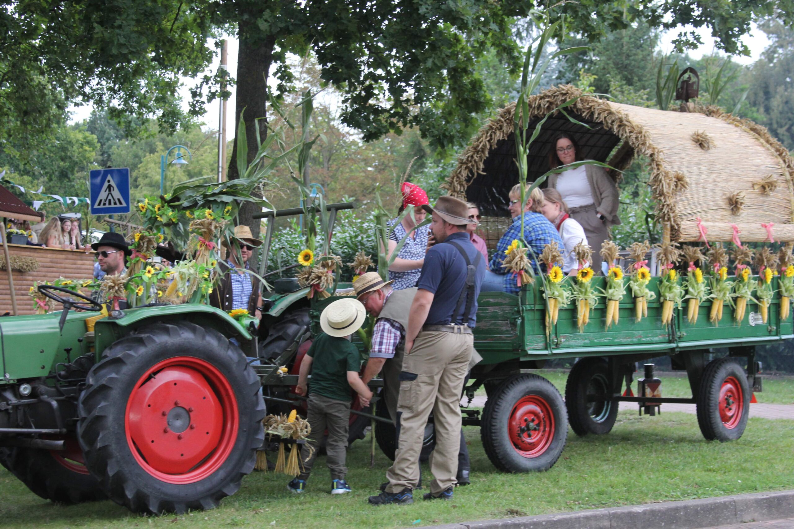 Ab 13.30 Uhr rollen die prächtigen Erntewagen auf den Platz und nehmen Aufstellung. Um 14.00 Uhr wird Pastor Sönke v. Stemm die Gäste mit einem festlichen Gottesdienst im Festzelt willkommen heißen. Danach heißt es „Auf die Plätze, fertig, Ernteumzug!“ – dieses Jahr mit einem verlängerten Umzug durch das Dorf, der die Besucher in eine fröhliche Stimmung versetzen wird. Währenddessen können sich die Gäste im Festzelt bei Kaffee und Kuchen stärken und die Vorfreude auf die kommenden Höhepunkte genießen.