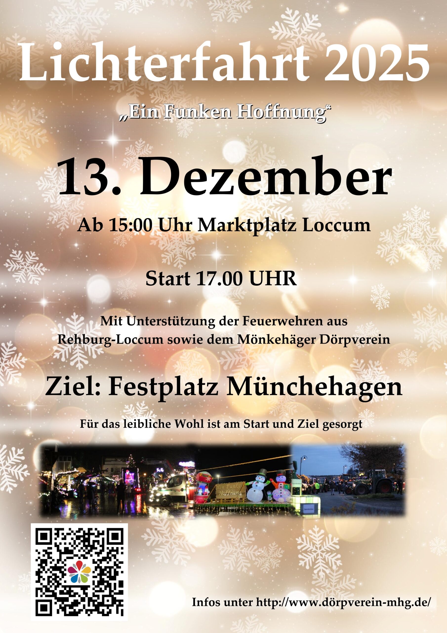 „Lichterfahrt, ein Funke Hoffnung“. Unter diesem Motto rollten am Samstag, 09. Dezember 67 Fahrzeuge durch die Gemeinden von Rehburg-Loccum. Hell erleuchtet, weihnachtlich geschmückt und den Nikolaus gleich mit im Gepäck.